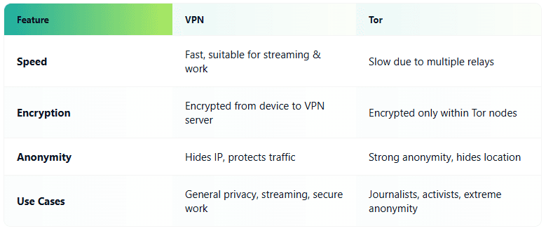 VPNs are just one of several tools people use to protect their online privacy. While they all aim to improve security or anonymity, each has its own strengths and limitations. Here’s a quick comparison with some commonly used alternatives.