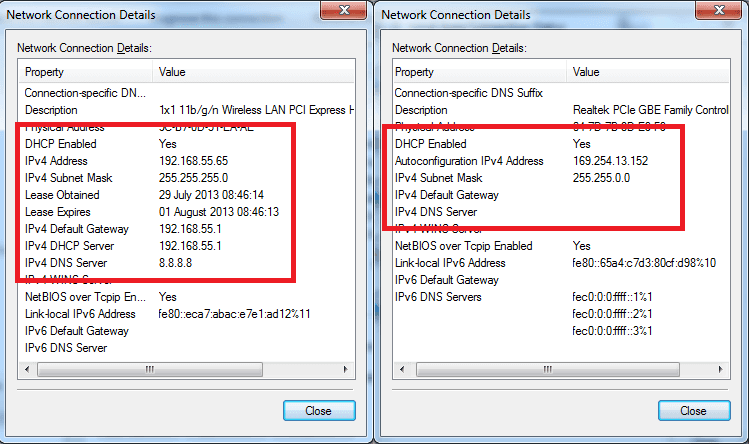 - Se você estiver conectado a uma rede convidada ou hotspot compartilhado, o Default Gateway pode não aparecer.
