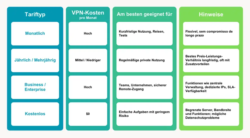 Sie erklären teilweise, warum die monatlichen VPN-Kosten je nach Tarif variieren.