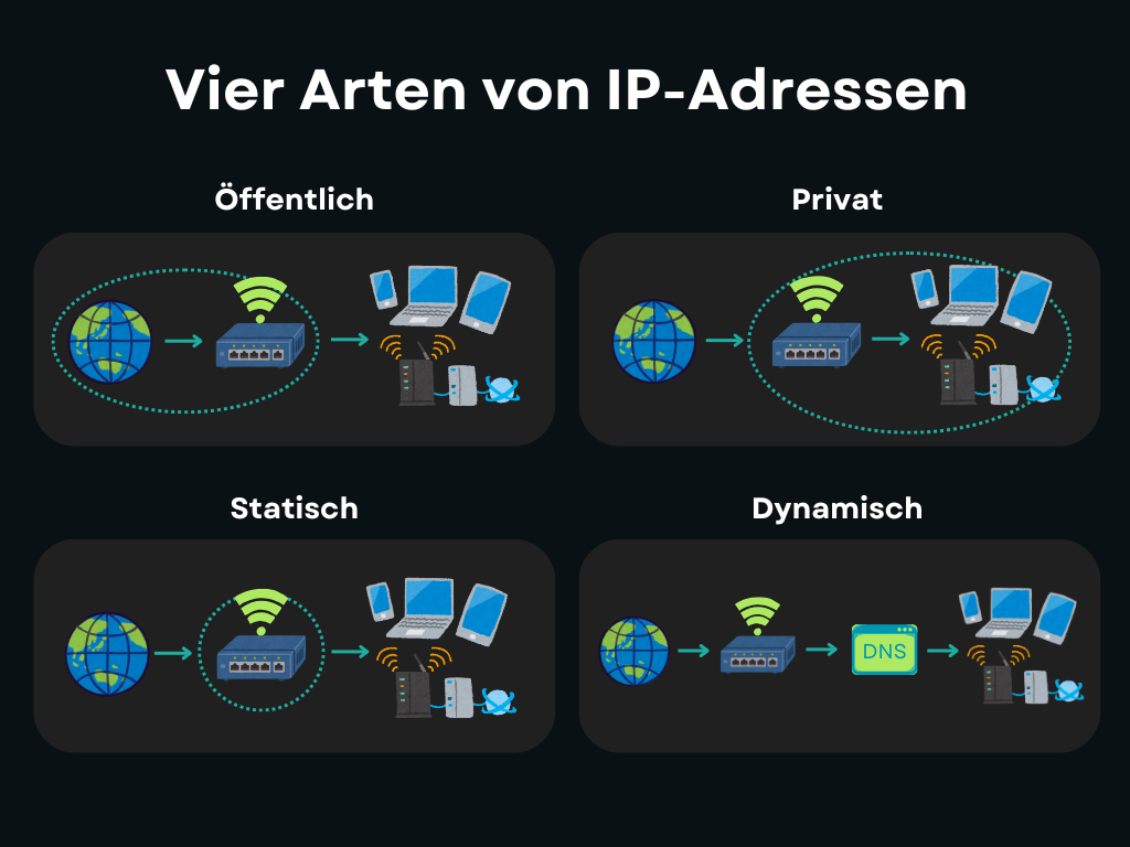 Nachdem wir nun die Grundlagen geklärt haben, werfen wir einen Blick auf die verschiedenen Arten von IP-Adressen und ihre jeweiligen Funktionen.