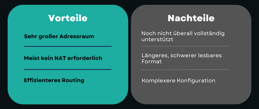 IPv6 verbessert zudem die Routing-Effizienz und reduziert den Bedarf an NAT, befindet sich jedoch weiterhin in der schrittweisen Einführung.