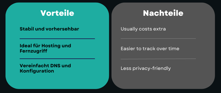 Ein weiterer wichtiger Unterschied besteht darin, ob eine IP-Adresse dauerhaft gleich bleibt oder sich automatisch ändert.