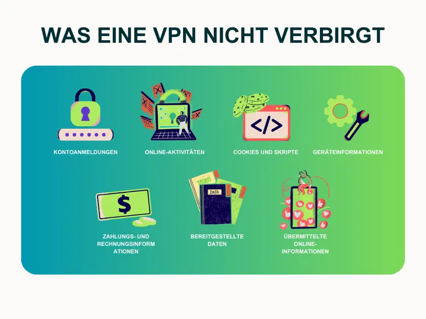 VPNs sind sehr nützlich, aber kein Allheilmittel. Viele erwarten, dass sie alle Online-Sicherheits- oder Datenschutzprobleme lösen. Das führt oft zu Enttäuschungen. Folgendes kann eine VPN nicht: