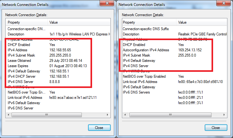 - Eine Adresse wie 169.254.x.x bedeutet, dass keine korrekte Netzwerkverbindung besteht.