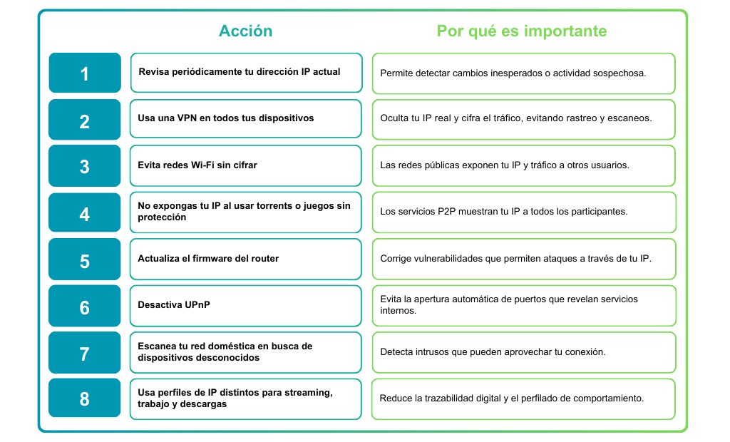 - No compartas tu IP públicamente.