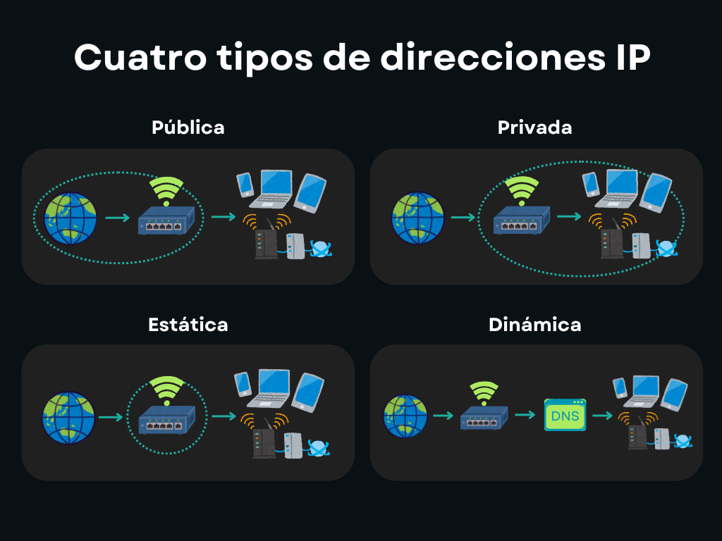 Ahora que ya repasamos los conceptos básicos, veamos los distintos tipos de direcciones IP y para qué sirven.