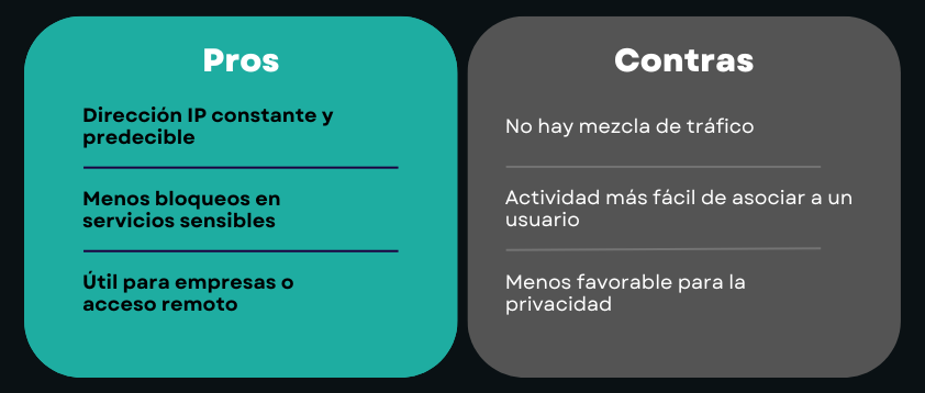 Sin embargo, ofrecen menos anonimato que las IPs compartidas.