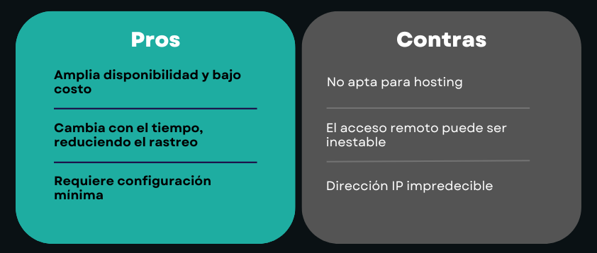 Esto simplifica la administración para el proveedor y reduce la intervención manual. Además, aporta un nivel adicional de privacidad al cambiar la IP con el tiempo.