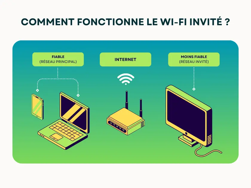 Un réseau invité est une connexion Wi-Fi distincte créée sur votre routeur. Il :