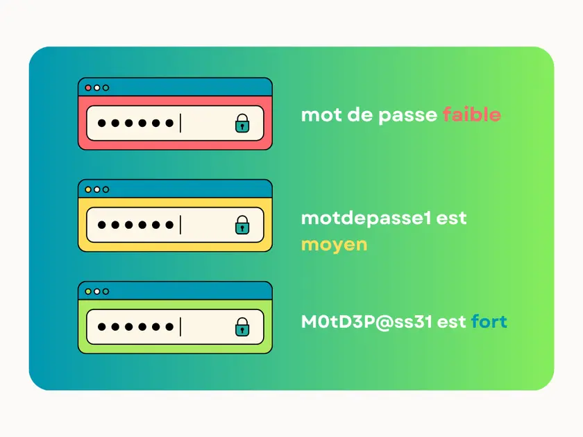 De nombreuses personnes utilisent encore des mots de passe simples comme leur adresse, leur numéro de téléphone ou des variantes de 12345678. Ceux-ci peuvent être devinés ou cassés très rapidement.