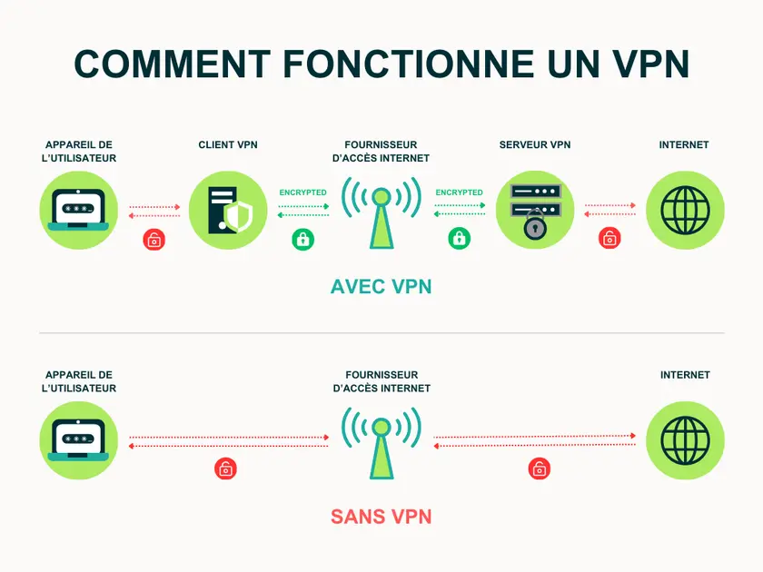 Certains s’attendent à ce que VPN “booste” la connexion. En réalité, la cryptographie et le reroutage ajoutent un peu de latence. Une bonne VPN minimise ce ralentissement, mais n’augmente pas les performances. - Ne cache pas votre activité sur les sites où vous êtes connecté