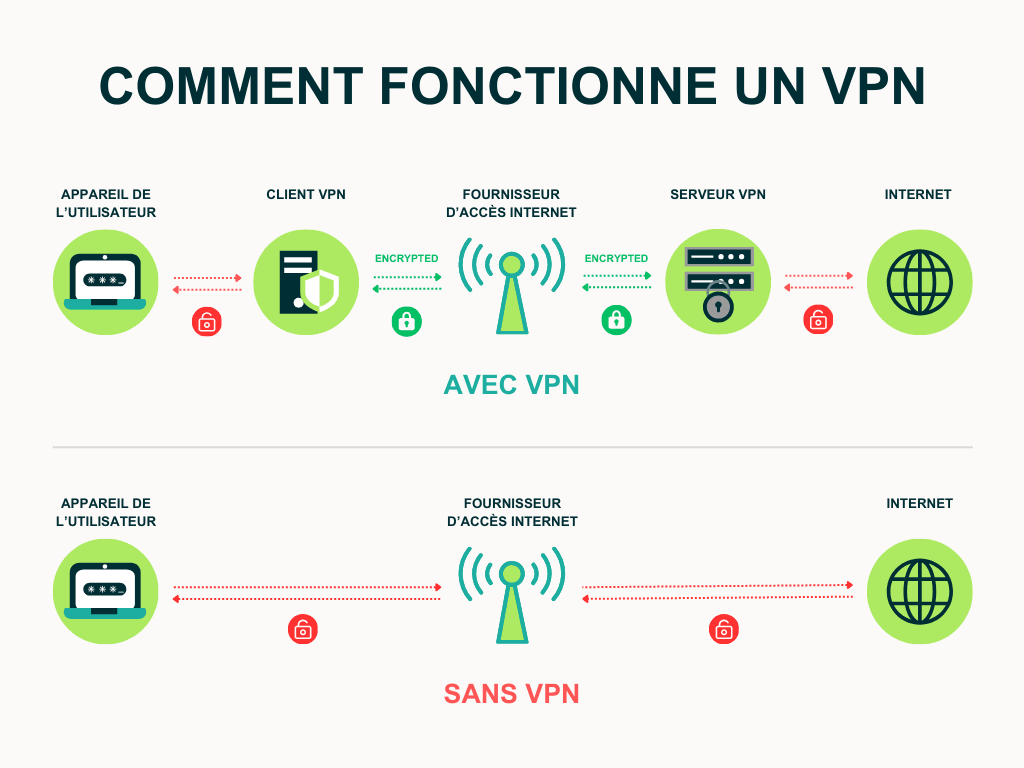 La façon la plus simple d’y penser est qu’un VPN crée une sorte de tunnel privé pour votre activité en ligne. Dans ce tunnel :