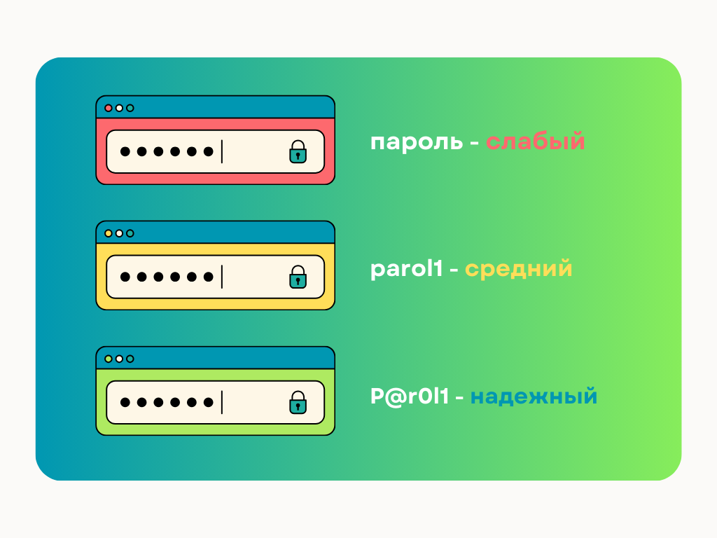 - Не публикуйте и не передавайте пароль через публичные или небезопасные каналы