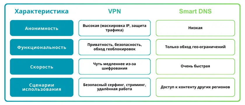 Прокси - легкие, но ограниченные; Tor - самый анонимный, но очень медленный; Smart DNS меняет только геолокацию.